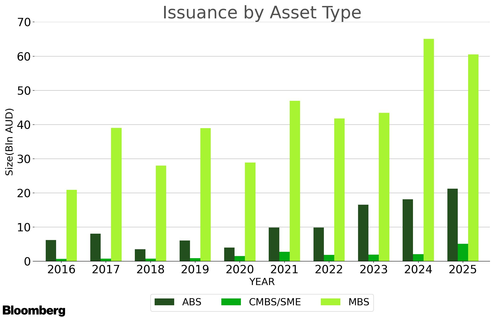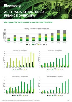 The Australian Securitisation Forum, courtesy of Bloomberg Finance L.P and Westpac Institutional Bank, is pleased to provide a snapshot of the Australian structured credit market. Please note that for the purposes of the aggregated data charts, the statistics provided by Bloomberg include private deals (i.e. deals that are not disclosed to the public). Where deal names are provided, private transactions are excluded.